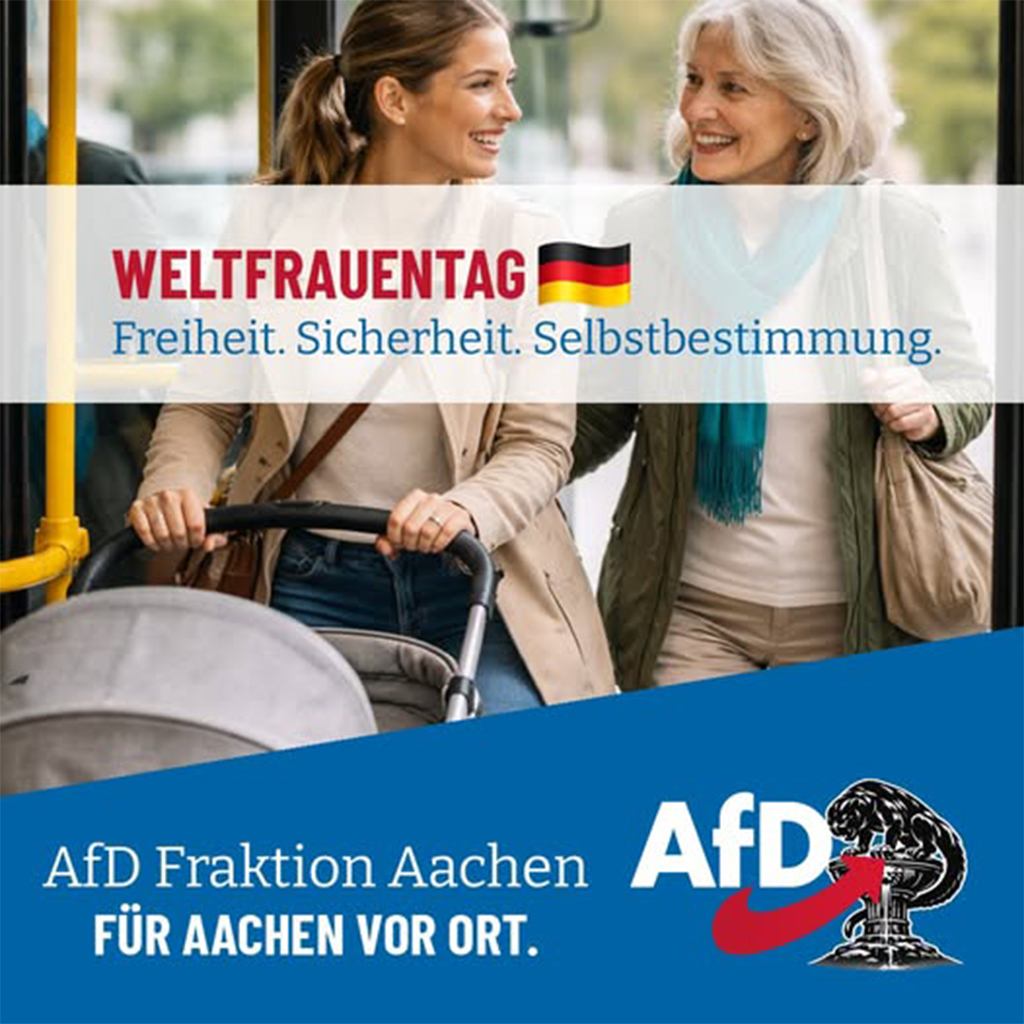 Als AfD-Fraktion im Rat der Stadt Aachen setzen wir uns für echte Gleichberechtigung und für sichere öffentliche Räume ein, in denen Frauen sich frei bewegen können.